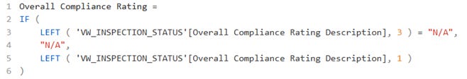 After investigating the data, I noticed there was a calculated column in her FCT Table named overall compliance rating.