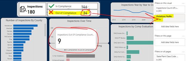 This measure tests if filtering for Violations YesNo = "Yes" works correctly on its own.