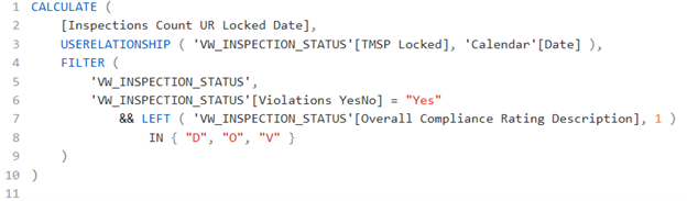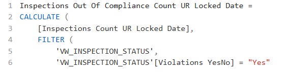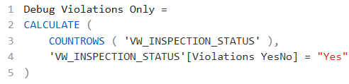 Explanation: This measure counts rows where Violations YesNo is "Yes".
